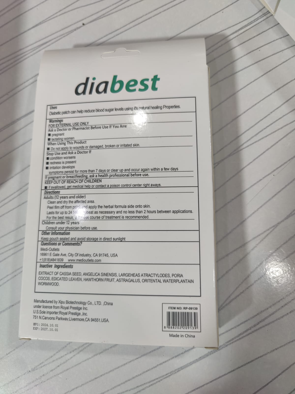 Diabest Diabetic Patch Carb & Sugar Blocker are an innovative solution for diabetes management, designed to offer convenience and control to those living with the condition. With an 8-hour duration of effect, these patches are ideal for continuous monitoring of blood glucose levels. Their advanced technology not only monitors, but also acts to regulate glucose, providing a proactive response to unwanted fluctuations. Presented in a box containing 12 patches, Diabest ensures an adequate supply for effective daily management. Its patch consistency allows for easy and discreet application to the skin, suiting all skin types without causing irritation. Diabest’s body line is designed to integrate seamlessly into anyone’s daily routine, ensuring that diabetes management is as non-intrusive as possible.
