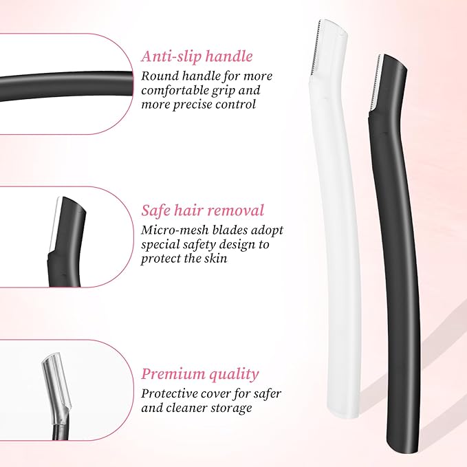 Achieve perfectly shaped eyebrows and smooth, fuzz-free skin with our Eyebrow Razors for Women. This dermaplane razor is designed to gently remove fine facial hair and peach fuzz, providing a flawless base for makeup application. With a protective safety cover and ergonomic design, it ensures precision and safety for both men and women. Its lightweight and portable design makes it ideal for home use or travel, while the durable stainless steel blade delivers long-lasting sharpness. Gentle on sensitive skin, it’s the perfect grooming tool to define eyebrows, trim facial hair, and enhance your natural beauty effortlessly.