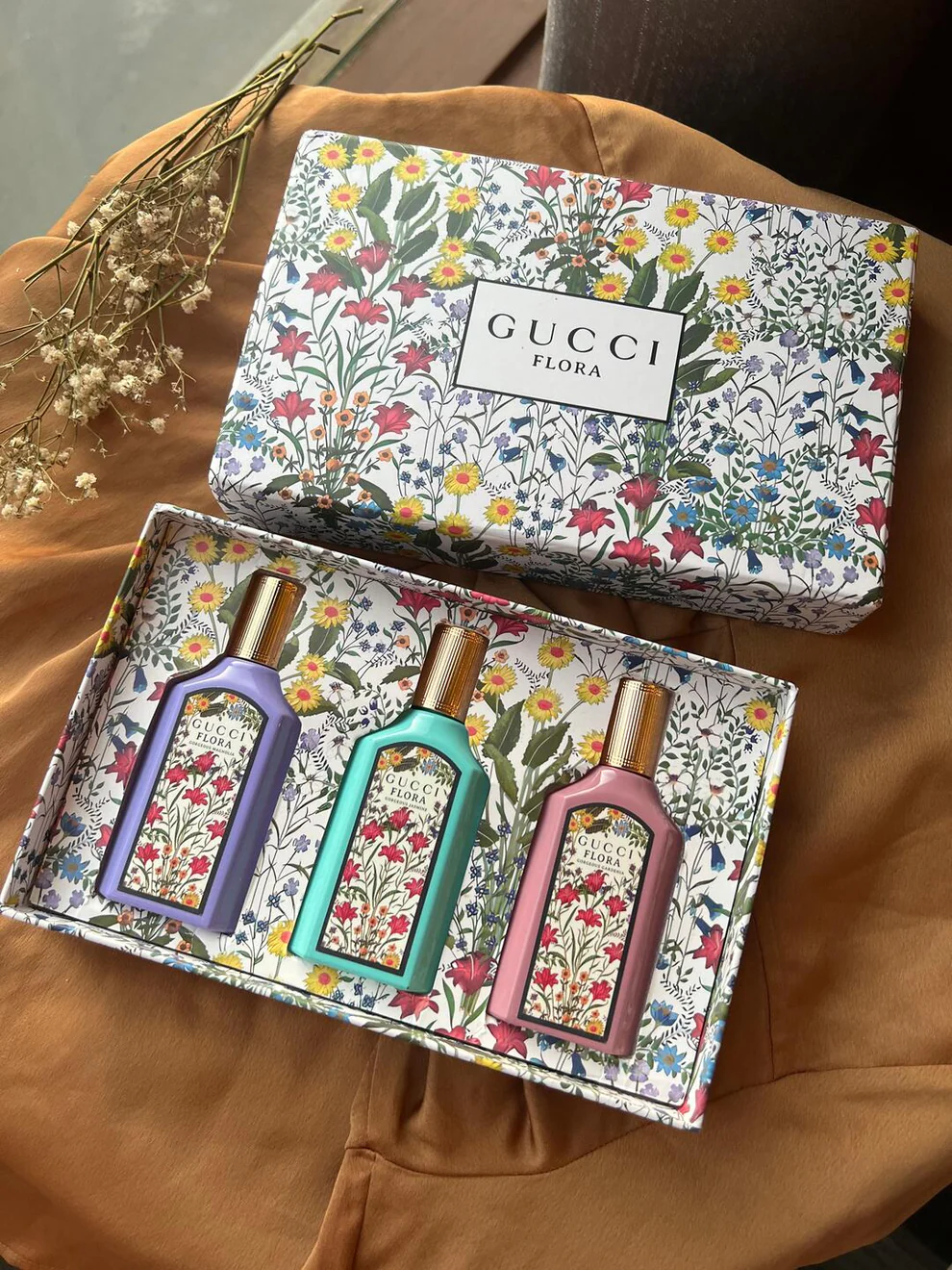 Gucci Flora Gorgeous Gardenia, Jasmine, and Magnolia Eau de Parfum Set is a luxurious fragrance collection for women who adore elegance and freshness. This set features three exquisite scents that combine floral, fruity, and soft green notes for a sophisticated aroma. Each perfume is presented in a beautifully designed bottle, making the set an ideal gift for special occasions or to elevate your daily fragrance routine.