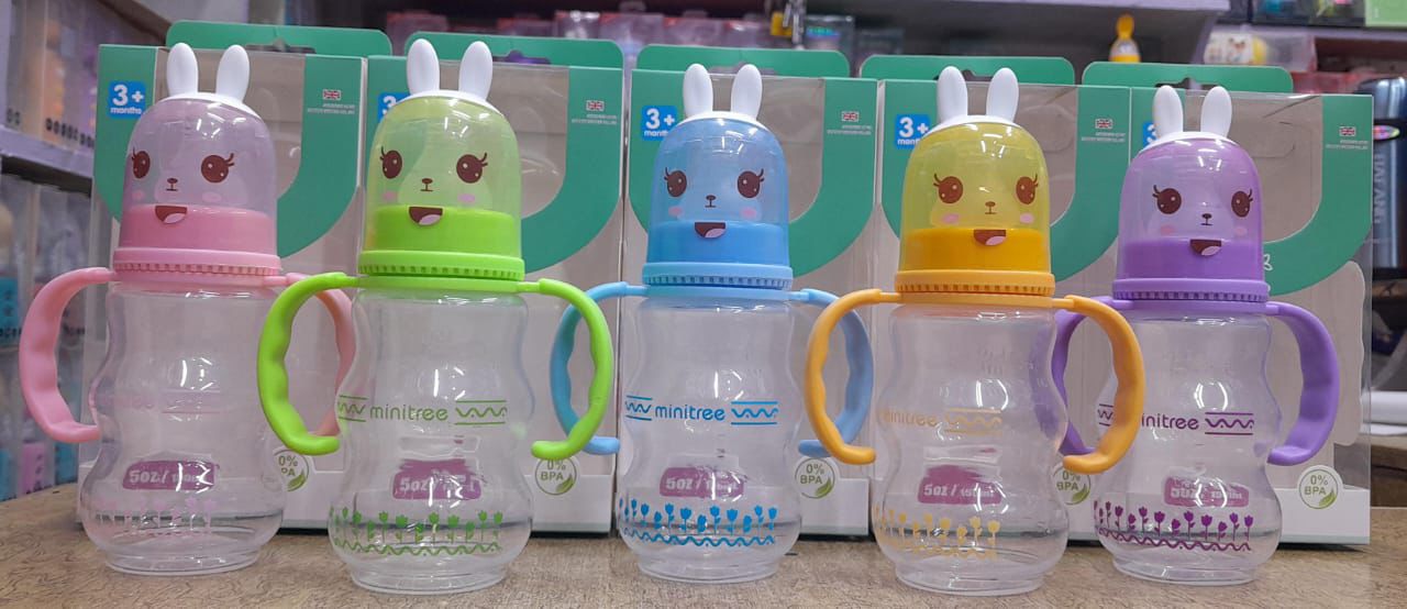 Make feeding time safe, fun, and engaging with the Minitree Baby Feeding Bottle with Handle and Rabbit-Face Top. Designed to delight infants, this bottle features an adorable rabbit-face lid that encourages babies to enjoy their feeds. Made from high-quality, BPA-free materials, it ensures every feed is hygienic and safe for newborns and toddlers. The ergonomic handle design allows little hands to hold the bottle independently, promoting self-feeding skills. Lightweight, durable, and easy to clean, this bottle is perfect for home use, daycare, or travel. Its combination of cute design and functional features makes it an ideal choice for parents looking for a safe, enjoyable, and practical feeding solution.