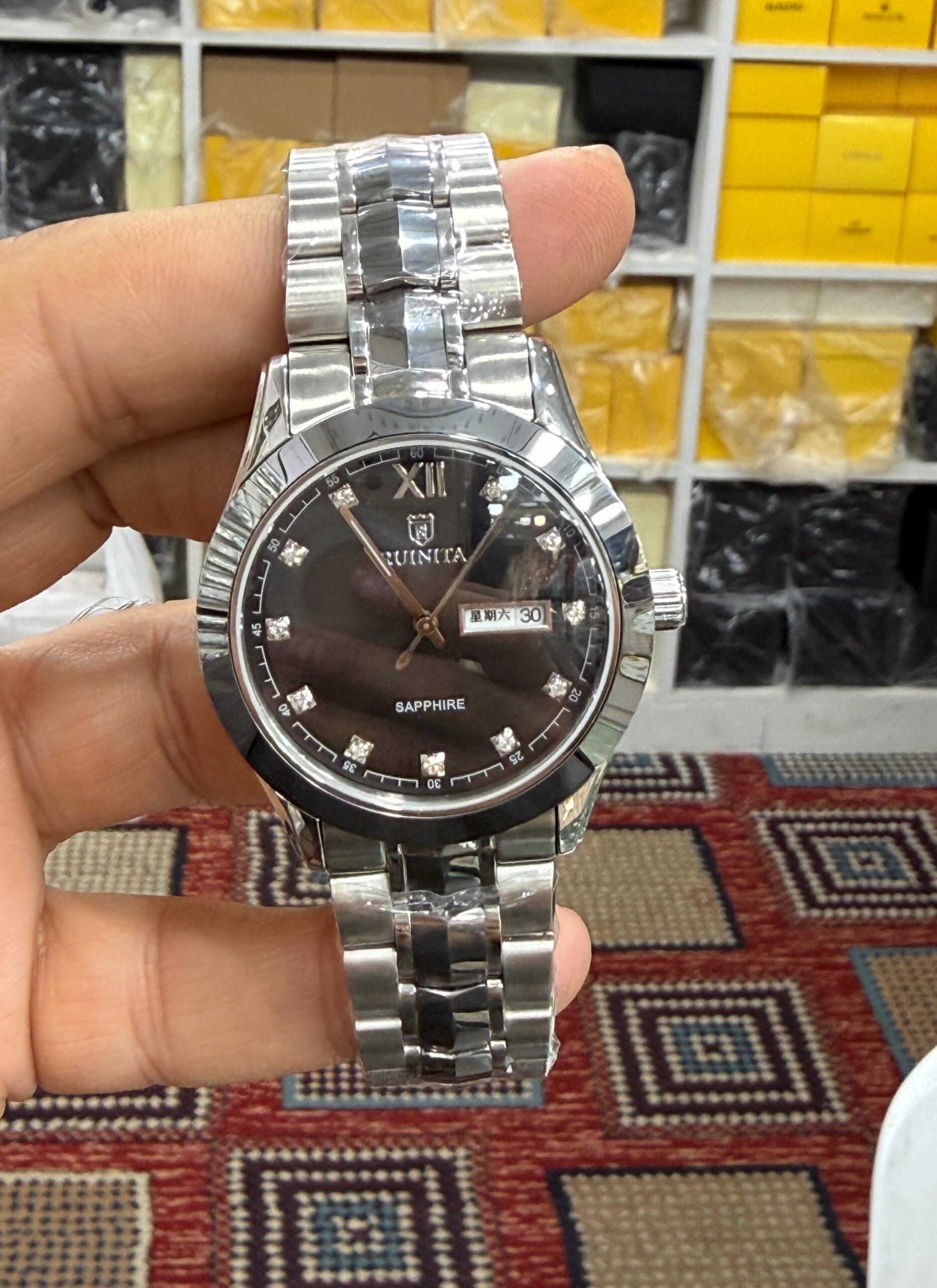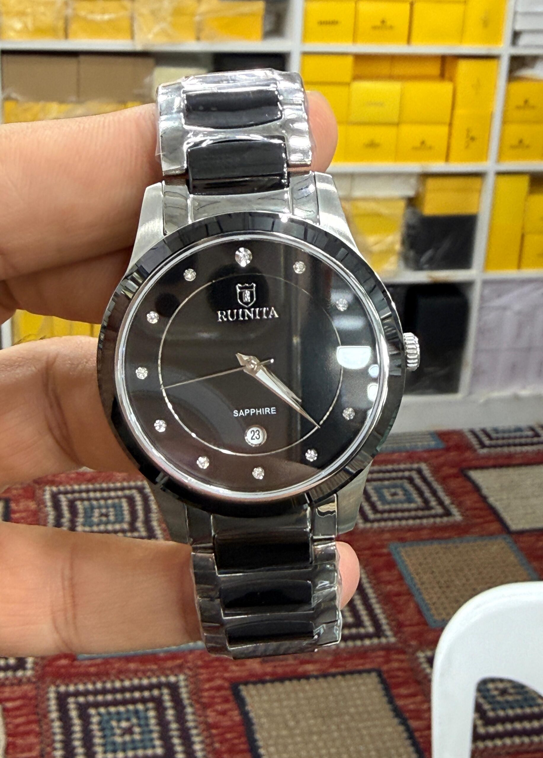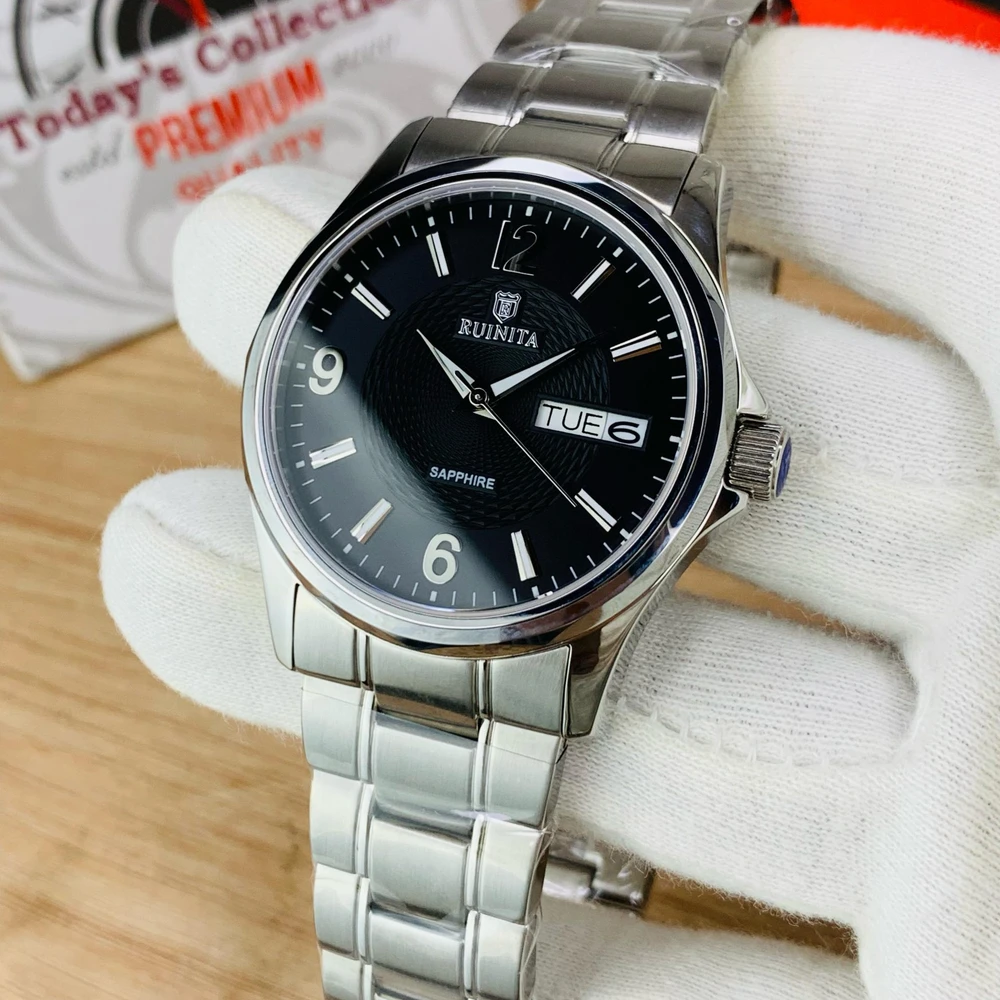 Tags: black and silver dial watch, classic black silver watch, crystal hour markers watch, durable stainless steel strap, elegant fashion watch, formal casual wristwatch, gift watch for men women, luxury stylish watch, premium analog watch, Ruinita men’s watch, Ruinita stainless steel watch, Ruinita women’s watch, stainless steel wristwatch, trendy fashion accessories., waterproof stainless steel watch