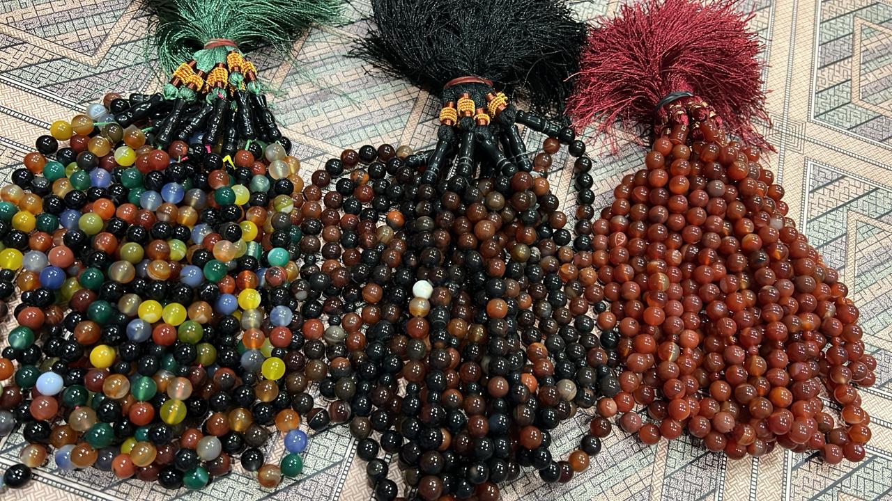 Tasbih crafted with natural Agate (Aqeeq) and Onyx stones.