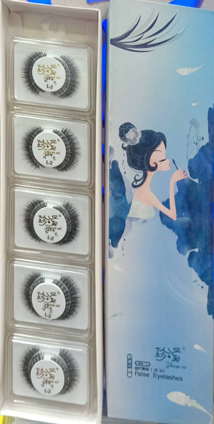 • Left side: Five neatly arranged lash pairs in individual compartments, each labeled “ZHEN XI L-2”